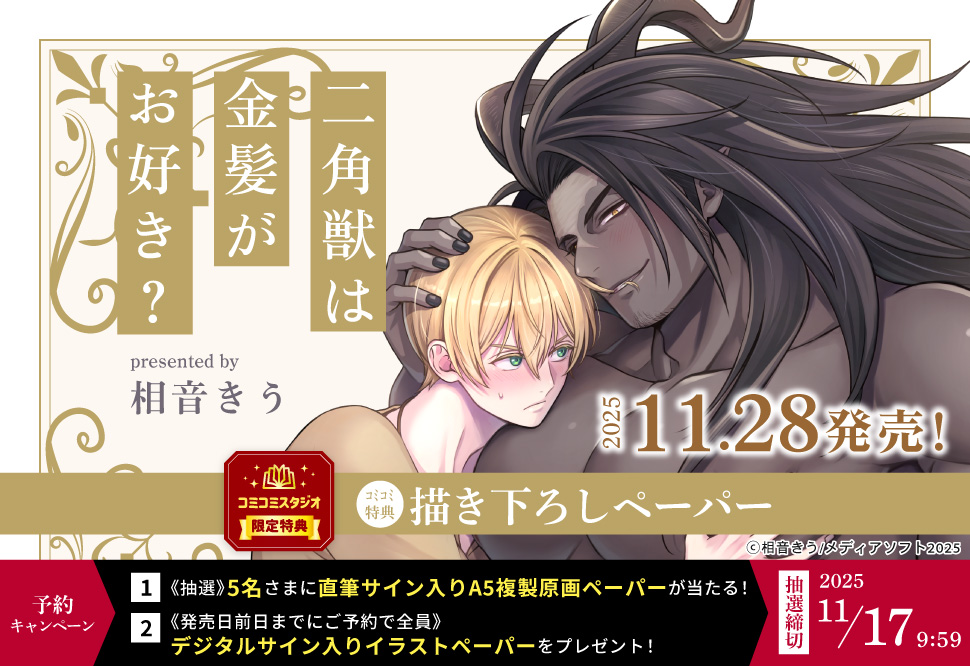 『二角獣は金髪がお好き?』予約キャンペーン 相音きう先生直筆サイン入りA5複製原画ペーパー&相音きう先生デジタルサイン入りイラストペーパーをプレゼント!