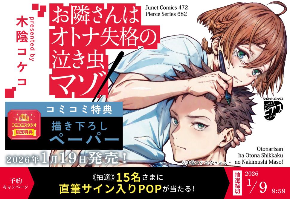 『お隣さんはオトナ失格の泣き虫マゾ!』予約キャンペーン 木陰コケコ先生直筆サイン入りPOPをプレゼント!
