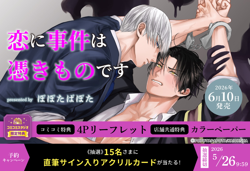 『恋に事件は憑きものです』予約キャンペーン ぽぽたぱぽた先生直筆サイン入りアクリルカードをプレゼント!