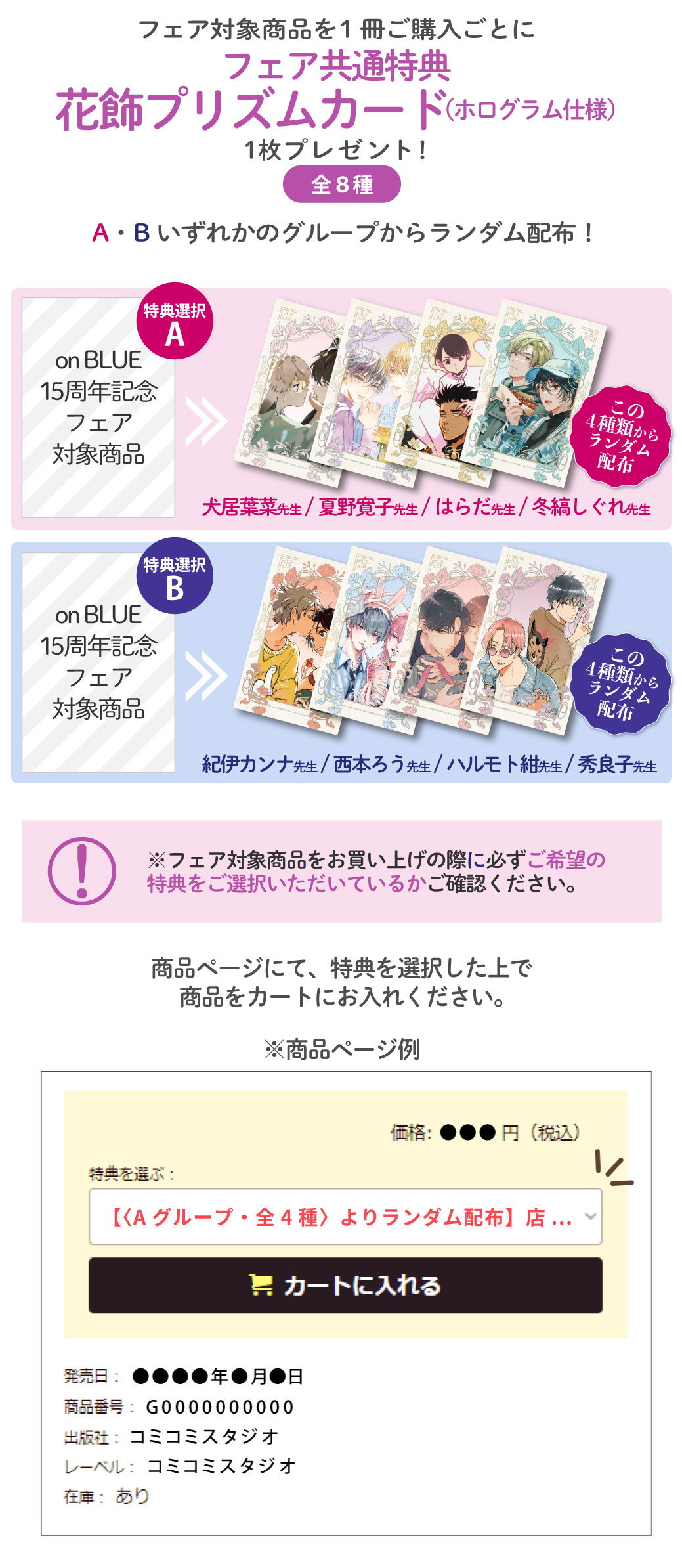 - 【「on BLUE」15周年記念フェア・対象商品】と表示されている商品がフェア対象商品となります。