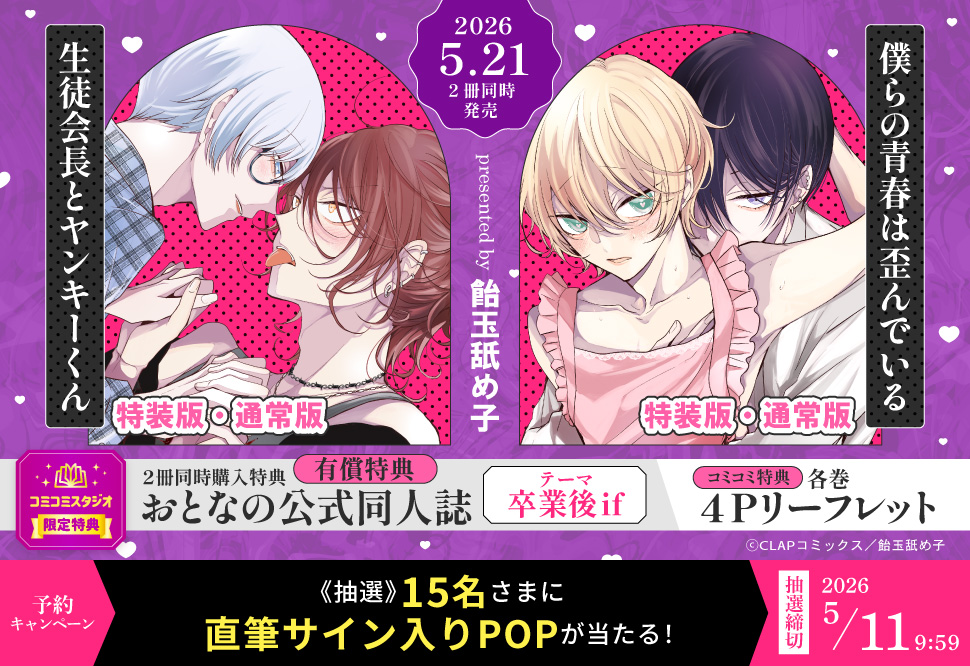 「【2冊セット商品】『生徒会長とヤンキーくん』+ 『僕らの青春は歪んでいる』(特装版・通常版)」予約キャンペーン 飴玉舐め子先生直筆サイン入りPOPをプレゼント!