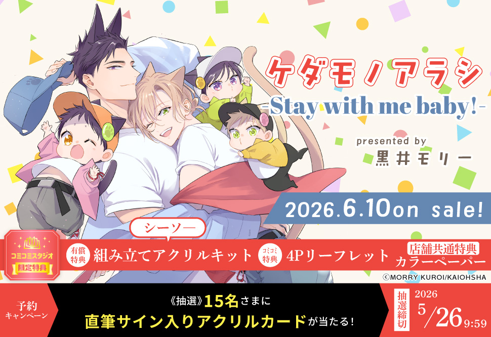 『ケダモノアラシ-Stay with me baby!-』予約キャンペーン 黒井モリー先生直筆サイン入りアクリルカードをプレゼント!