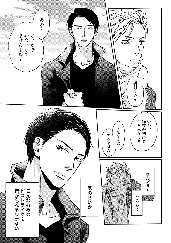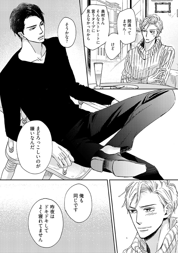 親密になっていくにつれて普段は無愛想な奥村から垣間見える優しい表情や、奥村を誘惑するときに覗かせる東湖の小悪魔な一面にキュンとすること間違いなしです。