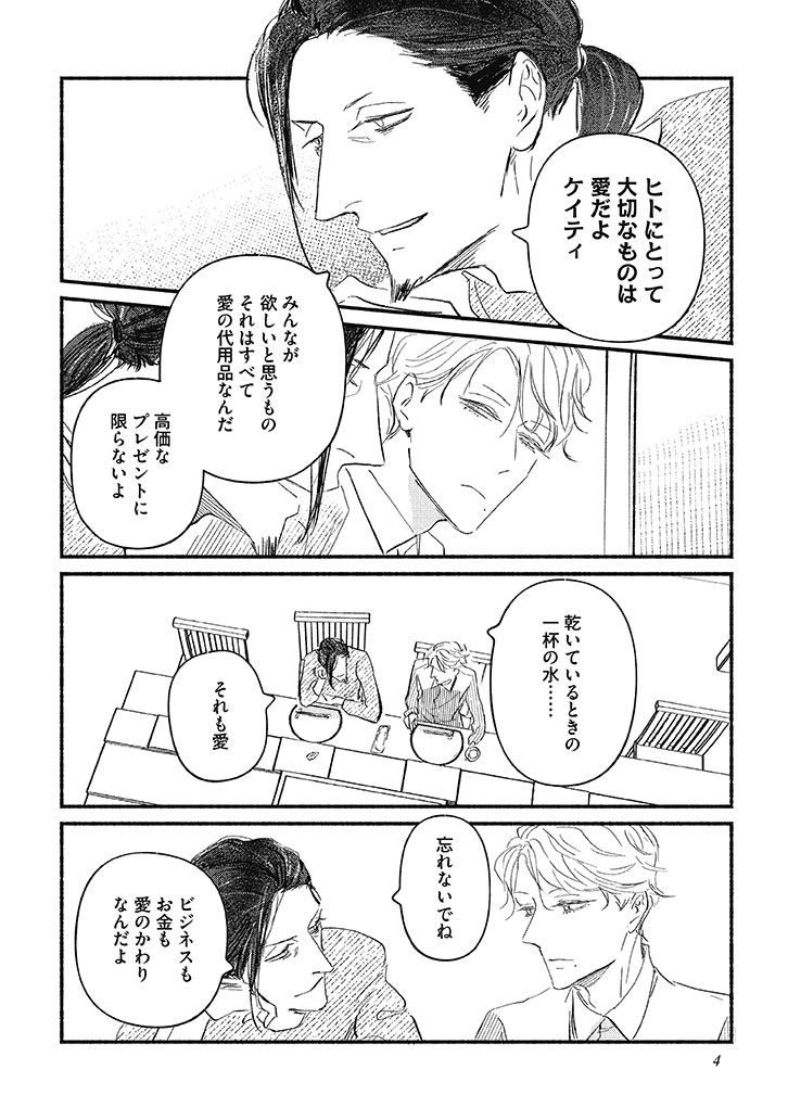 お仕事BLに定評がある未散先生、今回はIT系、天才肌の曲者ふたり(45歳と25歳)が主役で、先生にしては意外と珍しいことにエッチな行為ありきの展開です。ヨッシーとケイティの丁々発止のやりとりにニヤニヤさせられっぱなし…このたびも、見てるこっちがすっっっごく幸せになるボーイズラブ!いかがでしょう☆