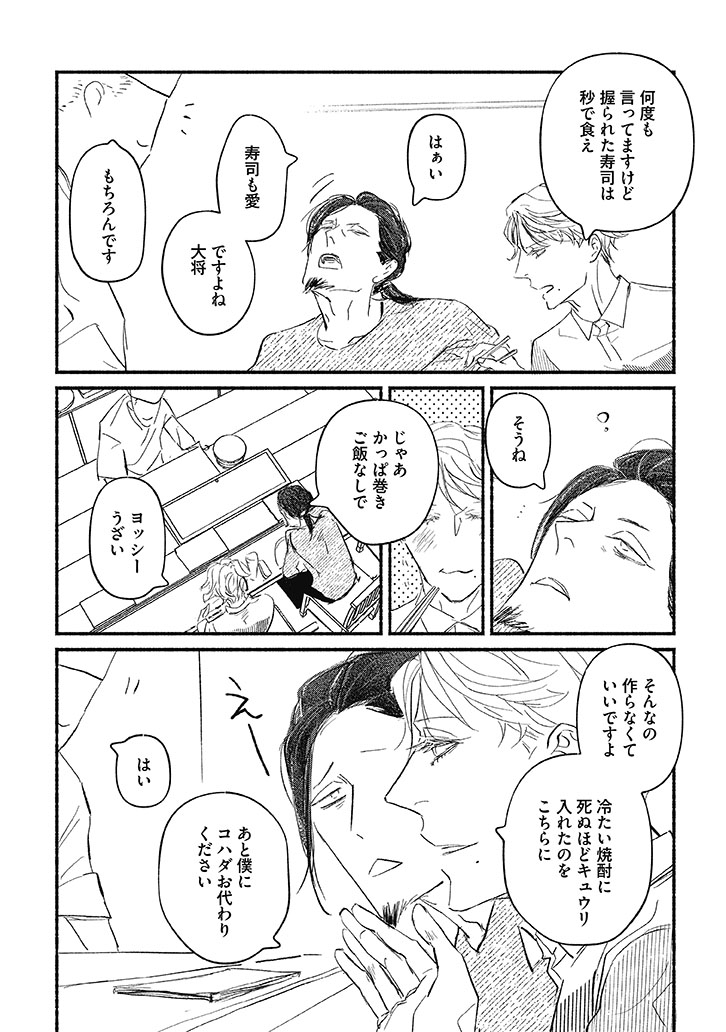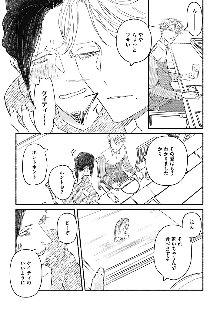 お仕事BLに定評がある未散先生、今回はIT系、天才肌の曲者ふたり(45歳と25歳)が主役で、先生にしては意外と珍しいことにエッチな行為ありきの展開です。ヨッシーとケイティの丁々発止のやりとりにニヤニヤさせられっぱなし…このたびも、見てるこっちがすっっっごく幸せになるボーイズラブ!いかがでしょう☆