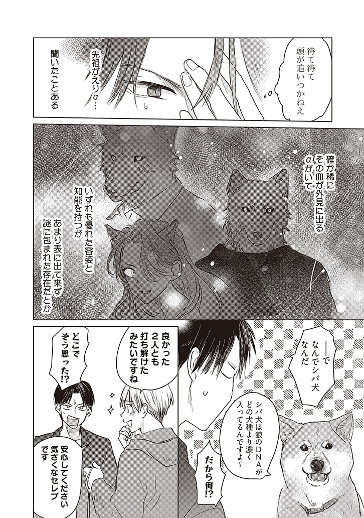芦名は先祖返りという特殊な体質を持つαで、常人が持ち得ない特殊な能力を持つ代わりに、 疲れるとシバ犬になってしまう。