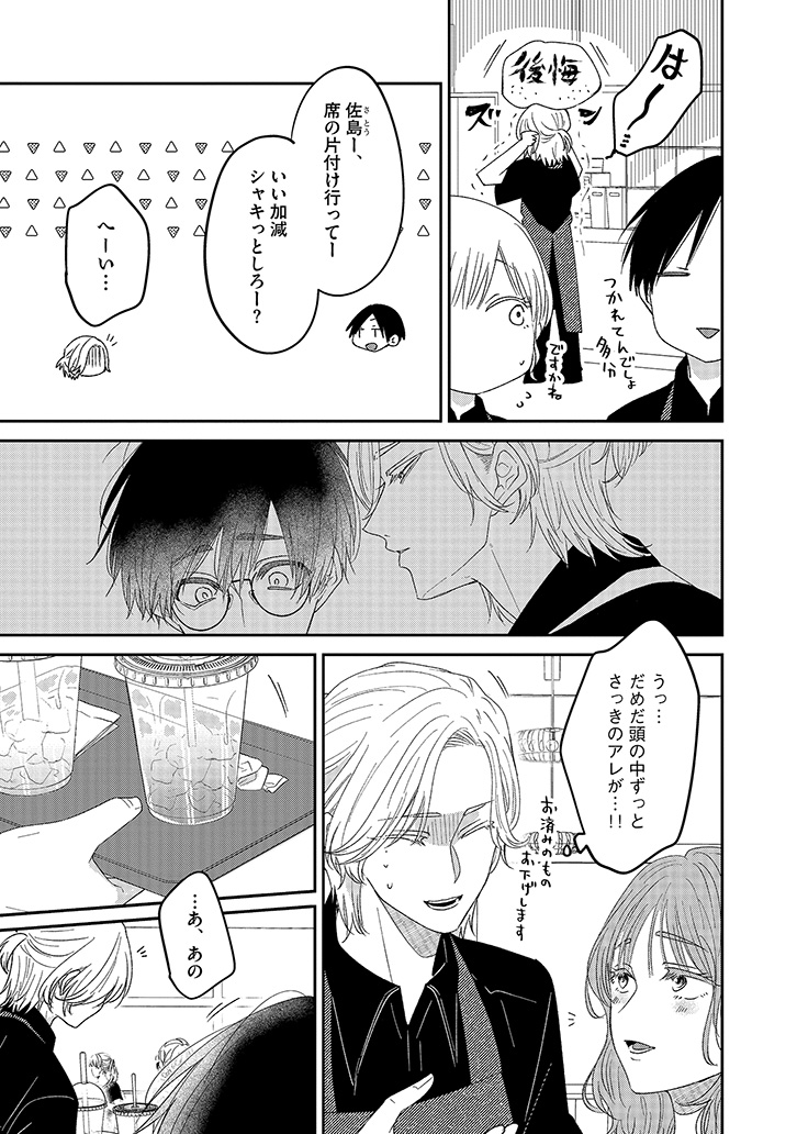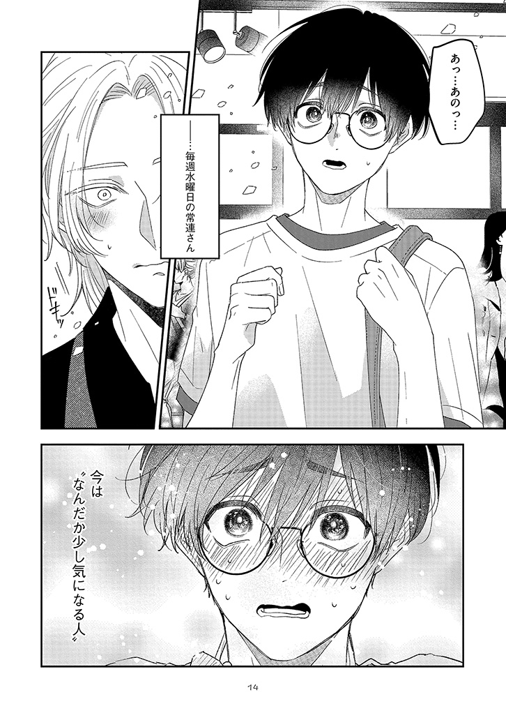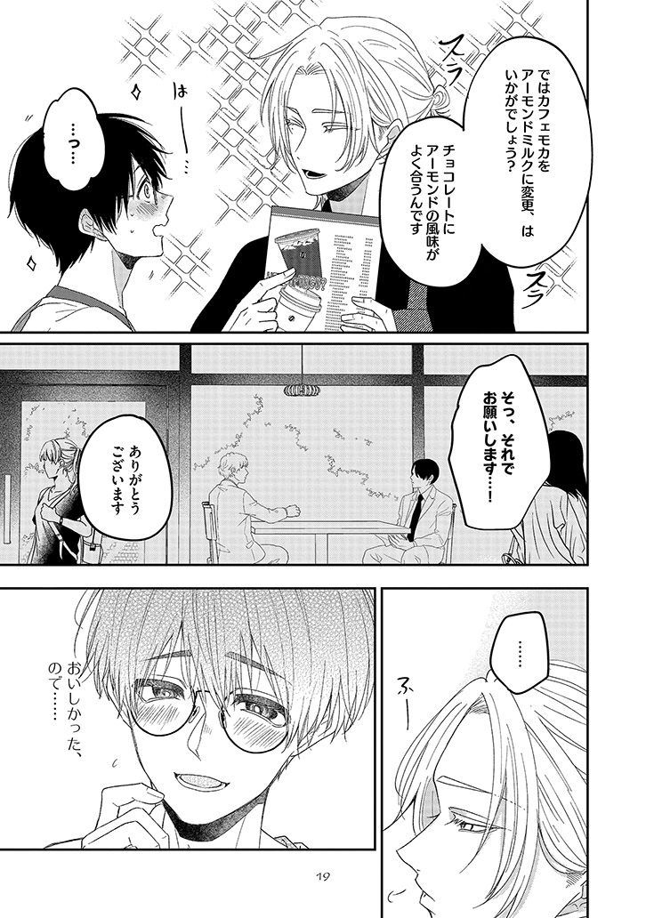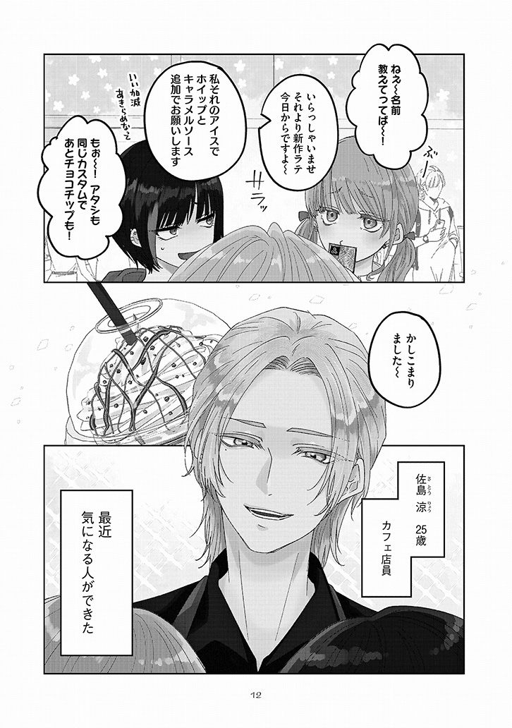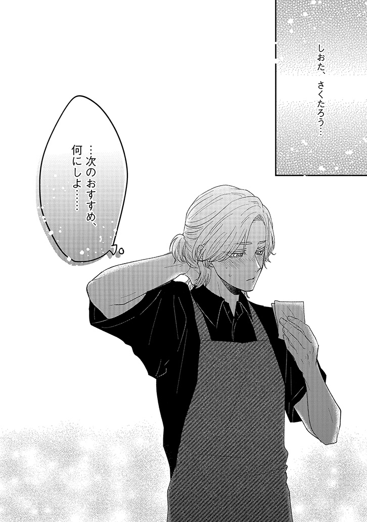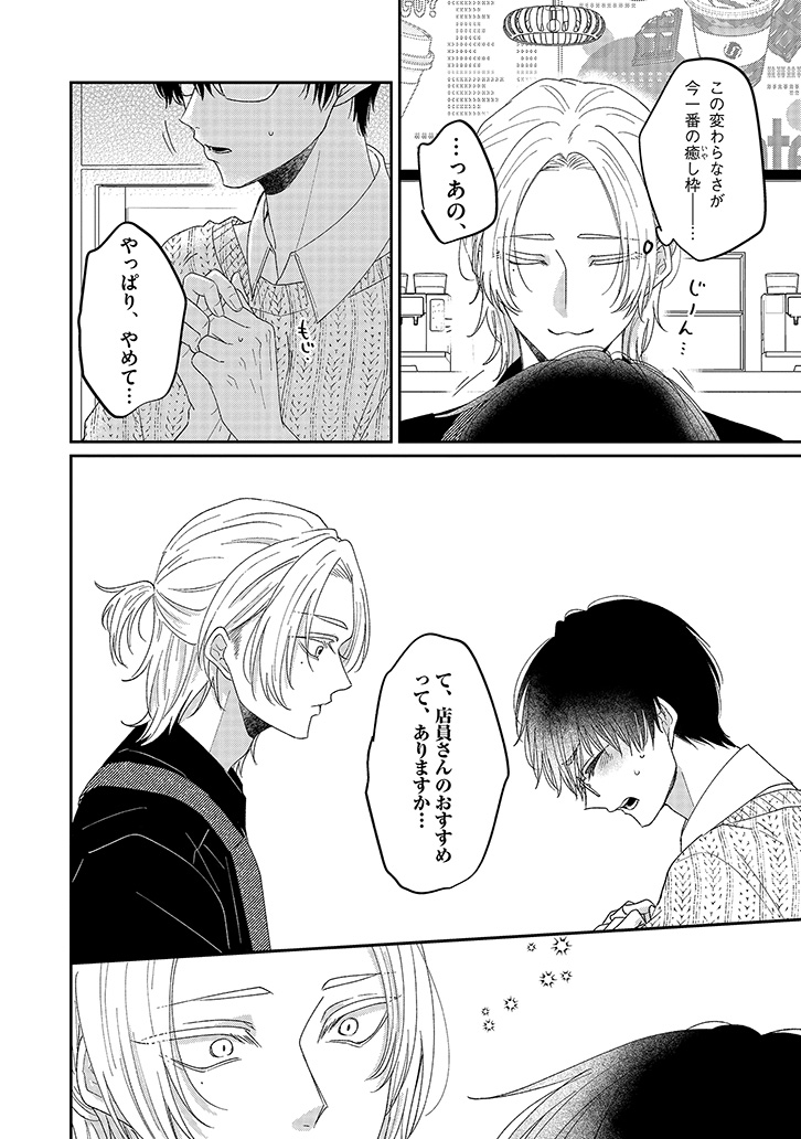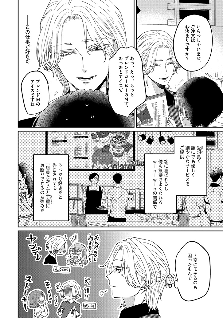 おすすめカスタマイズを幸せそうに味わう、潮田の笑顔を見るのが一番の楽しみになっていた。けれど、店員と客としての逢瀬を重ねるうちに、もっと特別でいたい――そんな独占欲が膨らんでいく。ある日、大荷物を抱えた潮田と出会い、家まで送ることになって……?