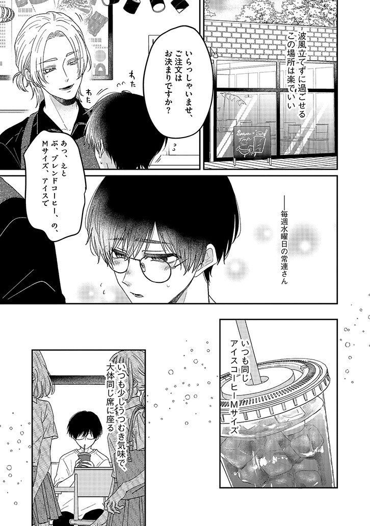 カフェ店員の佐島には気になる人がいる。毎週水曜日にやって来る常連さん・潮田だ。