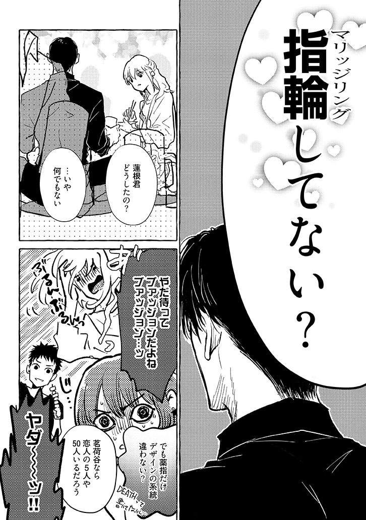 新婚さんじゃない茗荷谷の魅力的な身体に抗えない蓮根と、ストレートに欲求をぶつけられ余裕がなくなってしまう茗荷谷がもだもだする様子にキュンとすること間違いなし♡