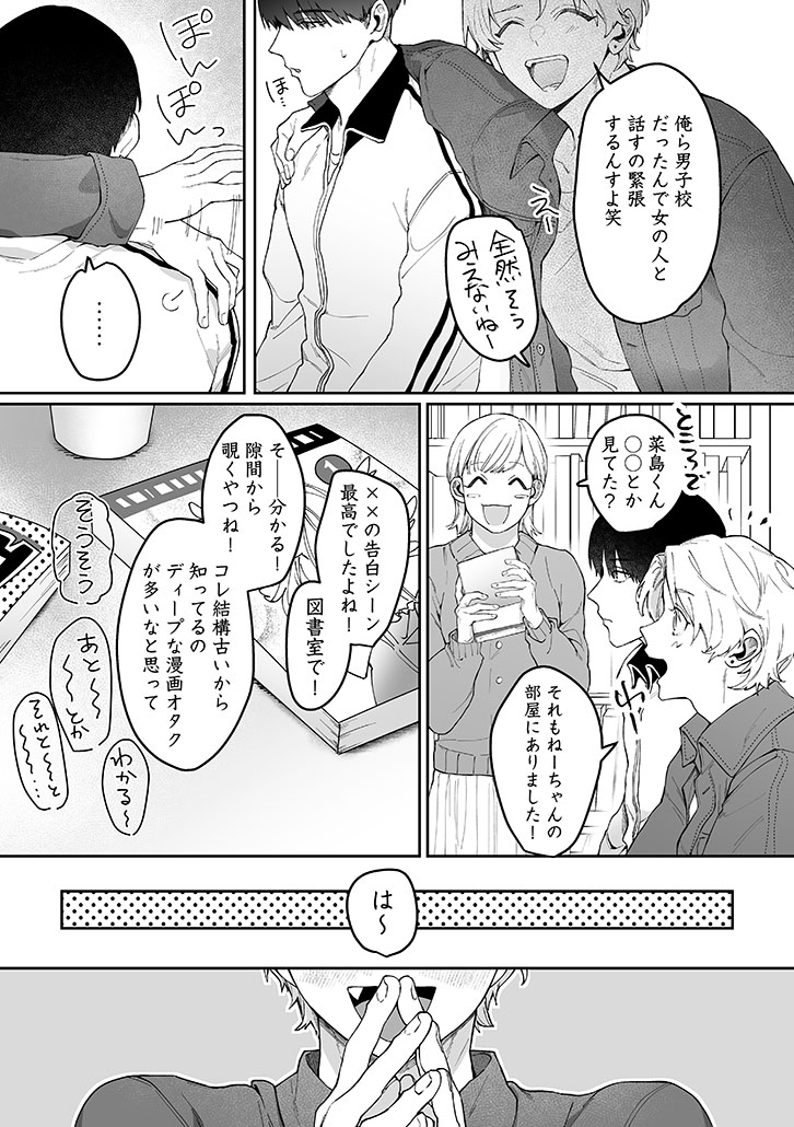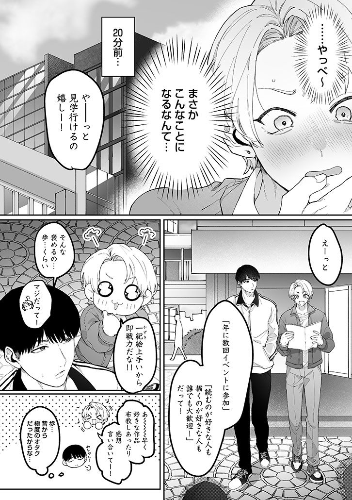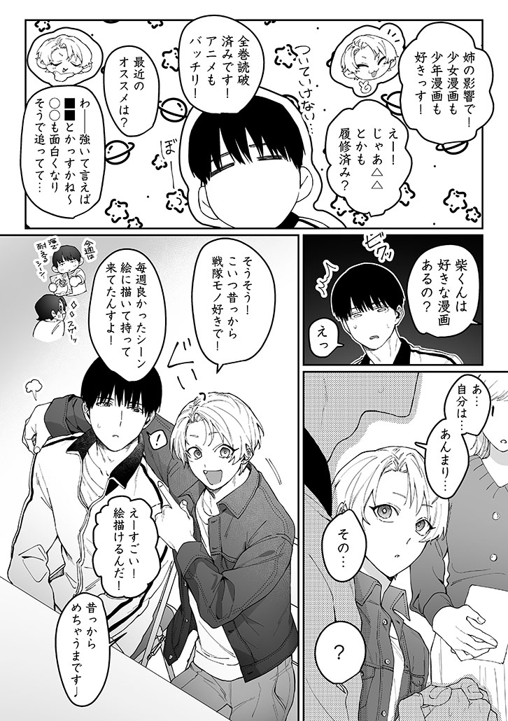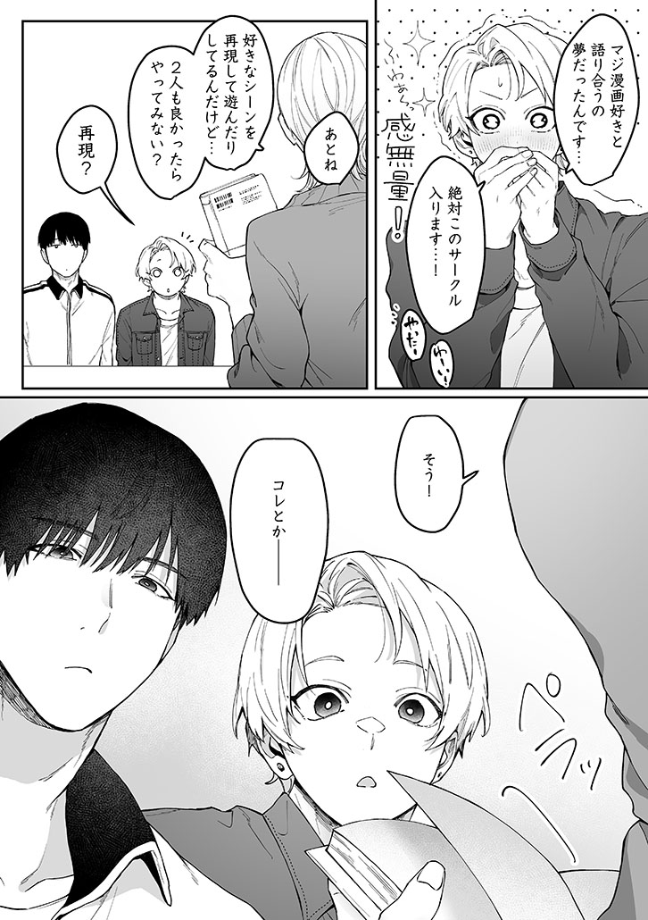 異様な雰囲気に尻込みするも、漫画談義で盛り上がり、いつの間にかポーズモデルを引き受けることになるふたり。