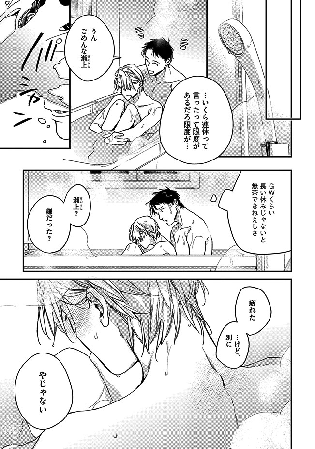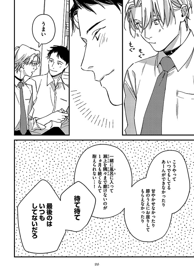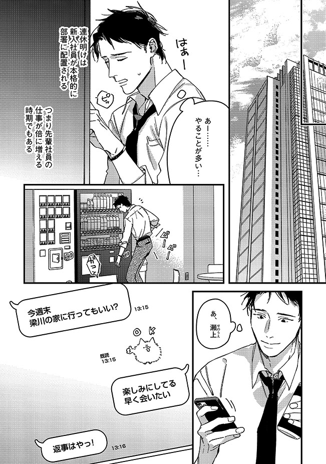 たっぷり甘やかして命令をして、あまあまな日々を過ごしていたある日、瀬上には昇進の話が、梁川には関西出張が舞い込む。