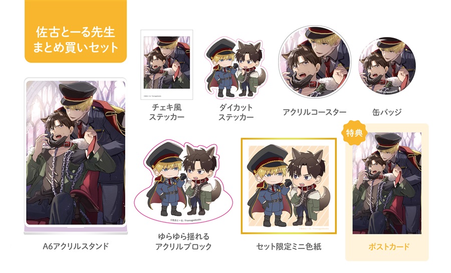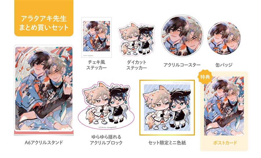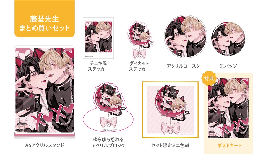 フェア用ポストカード、グッズの絵柄はアニメイト・フロマージュブックス・コミコミスタジオで共通となります。