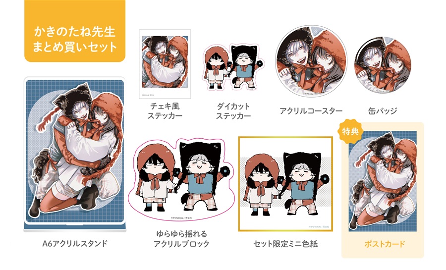 通常ではランダムとなる缶バッジとポストカードが作家様の絵柄ですべて揃います!