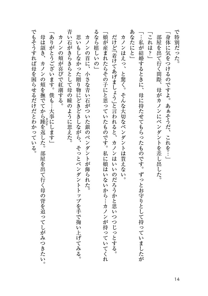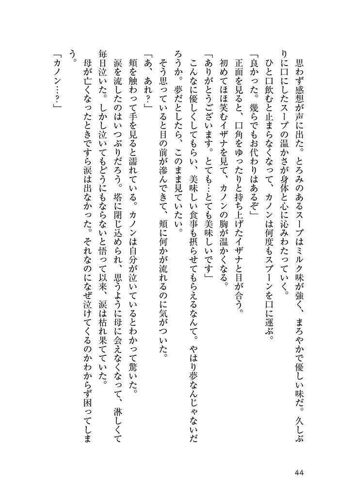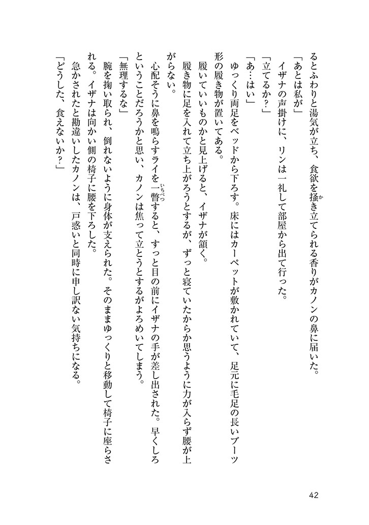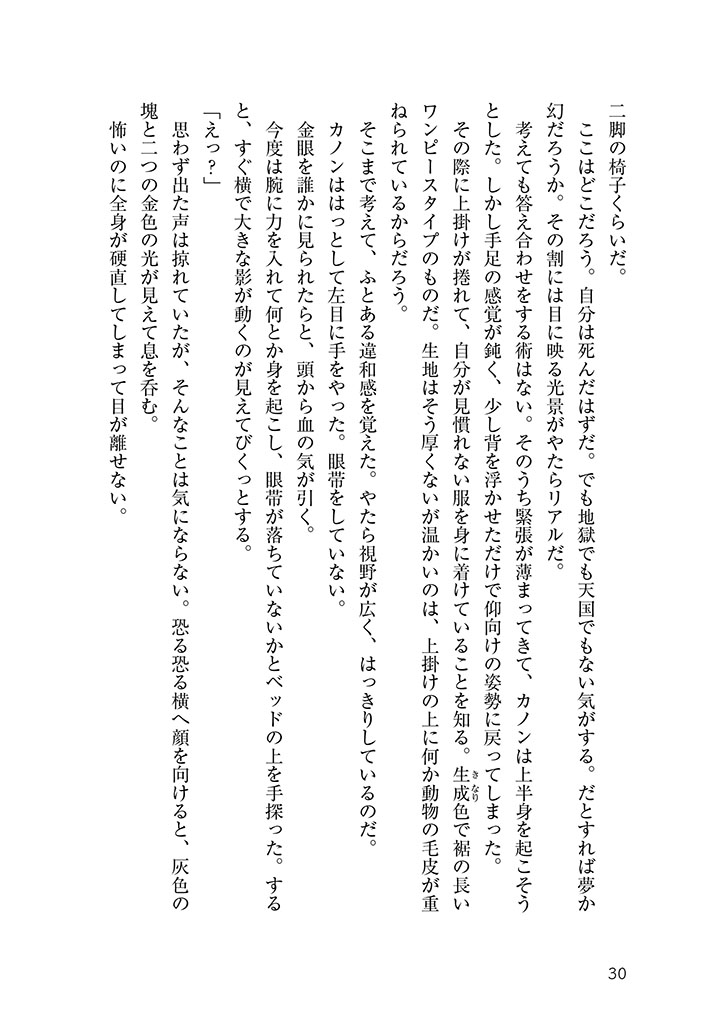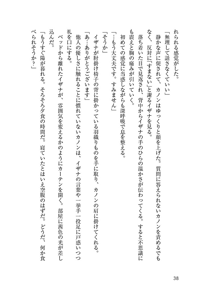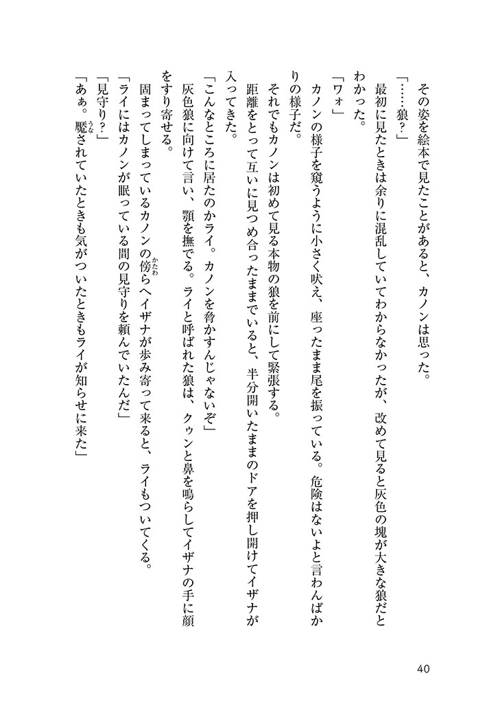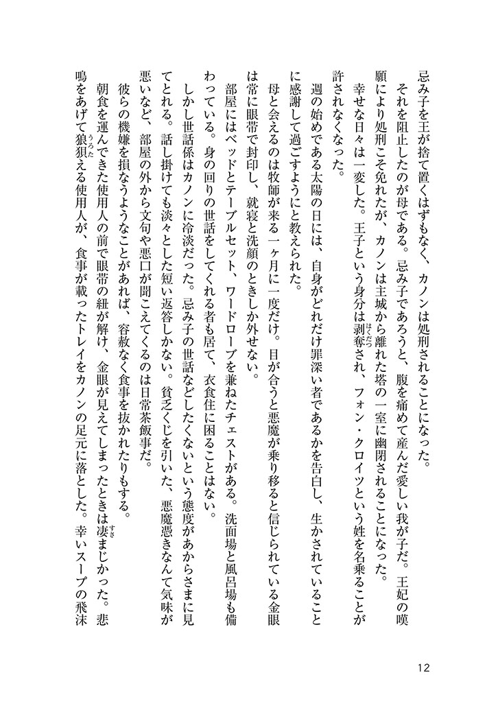 ヴァルミラ王国の第二王子、カノンは金眼のせいで悪魔憑きとされ、長年幽閉されていた。十八歳になると、父の命で崖から落とされ処刑されてしまう。しかし人狼族の領地の一つ、テイルーンダリの族長・イザナに命を救われ、彼のもとに身を寄せることに。イザナは寡黙そうな見た目によらず気さくで、政務の合間にカノンと食事をしたり、色々と気遣ってくれる優しい男だった。「なぜ悪魔憑きの僕に」と困惑しながら、カノンは彼に心を開いていく。領地での暮らしに慣れたある日、カノンが他領地の族長・アオギと楽しげに話していると、イザナがなぜか怒った様子で現れ…。